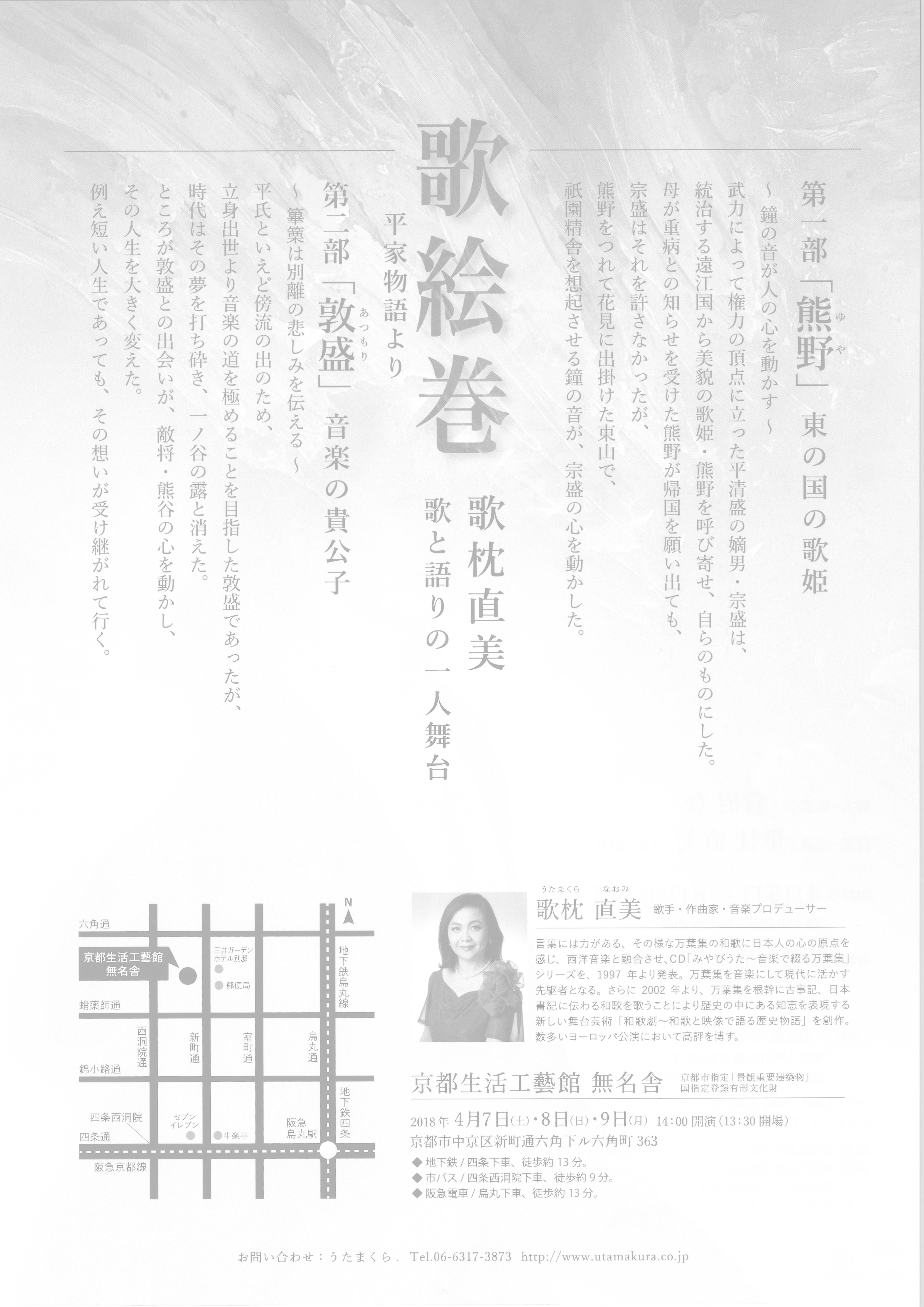 武力によって権力の頂点に立った平清盛の嫡男・宗盛は、統治する遠江国から美貌の歌姫・熊野を呼び寄せ、自らのものにした。母が重病との知らせを受けた熊野が帰国を願い出ても、宗盛はそれを許さなかったが、熊野をつれて花見に出掛けた東山で、祇園精舎を想起させる鐘の音が、宗盛の心を動かした。