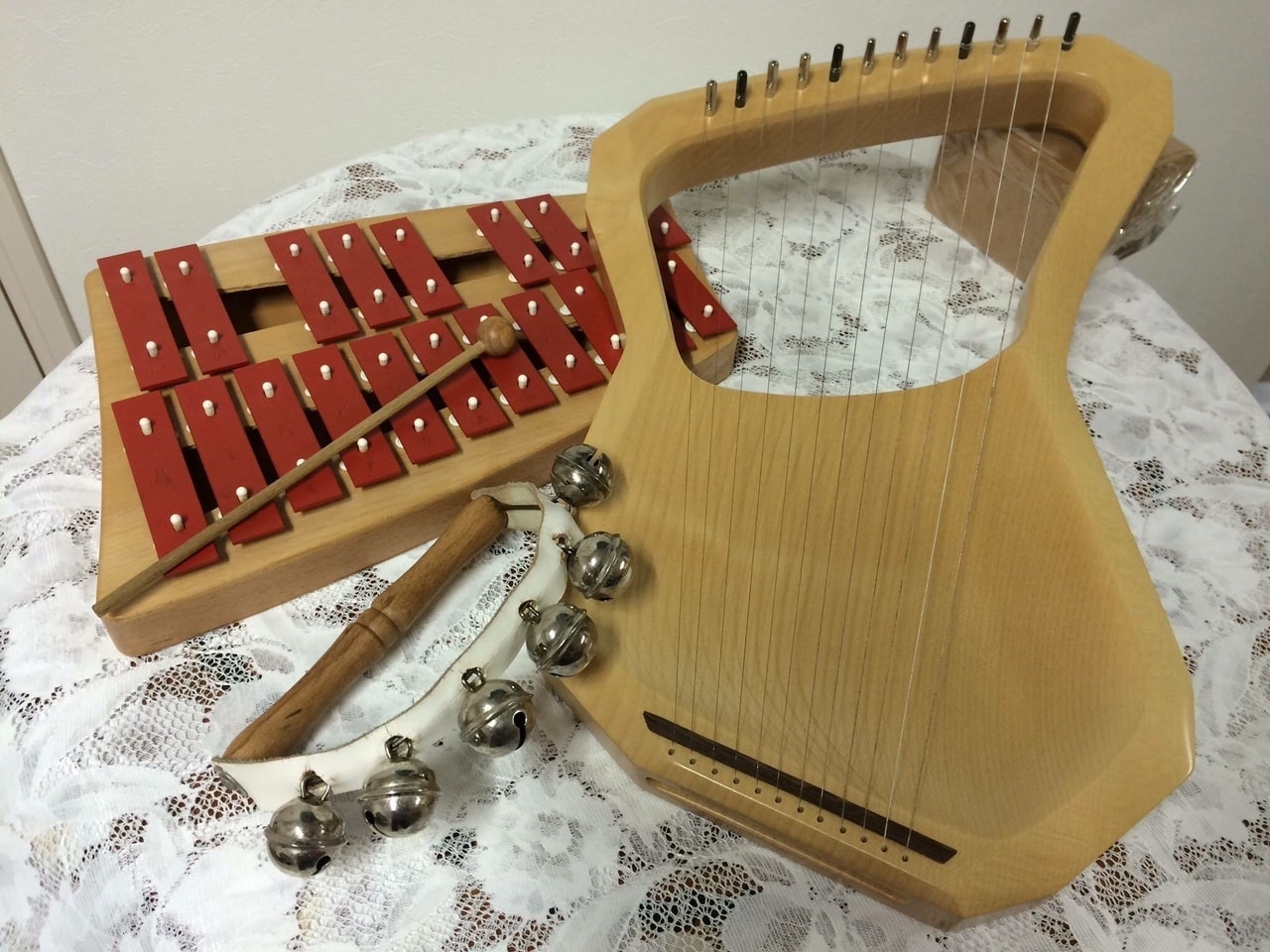 オリジナル教材、小楽器を導入し、お子さんの創造する力、聴く力を育てていきます。ピアノを弾くだけではなく、音楽を体で感じていきます。