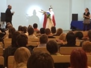 ポーランドの首都ワルシャワ。ポーランドへの訪問は今年で8回目。今年は、昨年の和歌劇公演を聴いて下さった方カタジーナさんが主宰される日本文化を紹介する団体「喜びの公園」主催の催し「日本文化の日」のメインコンサートとしてご企画くださいました。和歌劇の前に、琴の演奏、着物ファッションショーも行われました。お客様は、ポーランドで日本の文化に興味を持たれている方々が集まられていて、日本語を少し話される方が多くいらっしゃいました。「とてもきれいな声で感動しました。また映像、衣装がとてもすてきでした。」とご感想をいただきました。