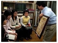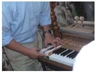 うたまくらならではの取り組みです。ピアノができるまでの鍵盤楽器がそろっているため、実際に重さを比べていただきました。鍵盤はもともとシーソー運動です。音を出す仕組みはいたって簡単で鍵盤の重さは今のピアノと比べ極端に軽いものでした。
