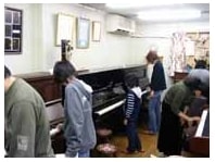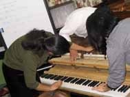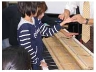 28日は大変貴重な体験をさせていただきありがとうございました。普段は絶対ありえない木やゴムのハンマーがどのような音を奏でるのか。又フェルトの状態によって音がどのように変化するのか。頭では想像できるものの、実際の音を体感するとより音に敏感になりました。子供さんがピアニシモで上手に音の調整をして弾かれる姿にも感動し、これこそ重要なポイントだと実感しました。普段レッスンで『やさしく弾きましょう』とか『ピアニシモで』とは言うものの、体感しないとその音は出ないことも確認しました。アクションの仕組みや鍵盤を下げる際のハンマーの動き等、目と耳で確認する事によってより繊細なタッチが可能になります。これは絶対自身が体験し、生徒さんに伝えないといけないことです。それなのにある程度専門的にピアノを演奏される方々が最も分かっていないことのようにも思えました。なぜかというとこの私自身が長年知らなかった事がたくさんあるからです。ピアノを鳴らすこと=フォルテで叩くこと だと思っていたからです。同じくピアノを指導される先生方に是非体験していただきたい内容でした。(C.S)