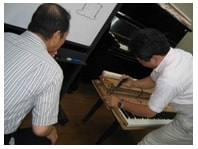 同じメーカーのピアノでも時代によって考え方の違いや、工夫が変わって行くということですが、まさに今現在のピアノとは違う、試行錯誤中の時代を反映したピアノをみることができて、貴重な体験でした。興味深くおもしろかったです!特に日本ではとても有名なスタインウェイですが、なかなかその技術、知識、時代などの話を聞くことができるのは、長いキャリアを持っていらっしゃる荒木さんと、今このピアノがあるという条件がそろっているからだと思います。一時間では足りないくらい、楽しく充実した時間でした。また次回も期待しています!(A.O)