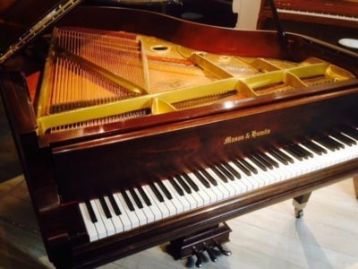 アメリカ・ボストン製造で1854年創業のメーカーで、この時期にスタインウェイを始めとするいくつもの有名なメーカーが生まれた時代です。ピアノとして完成されていた時代のピアノでいろんな構造や仕様が特許として生まれてきました。その中でもこのメーソン&ハムリンは弦の圧力に対応する響板のクラウン(反り)をいつまでも保たせるという画期的な構造(テンション・レゾネーター)を生み出しました。豊かな響きと音の伸びと細やかに反応する鍵盤が特徴です。年代を感じさせない感性豊かなピアノです。