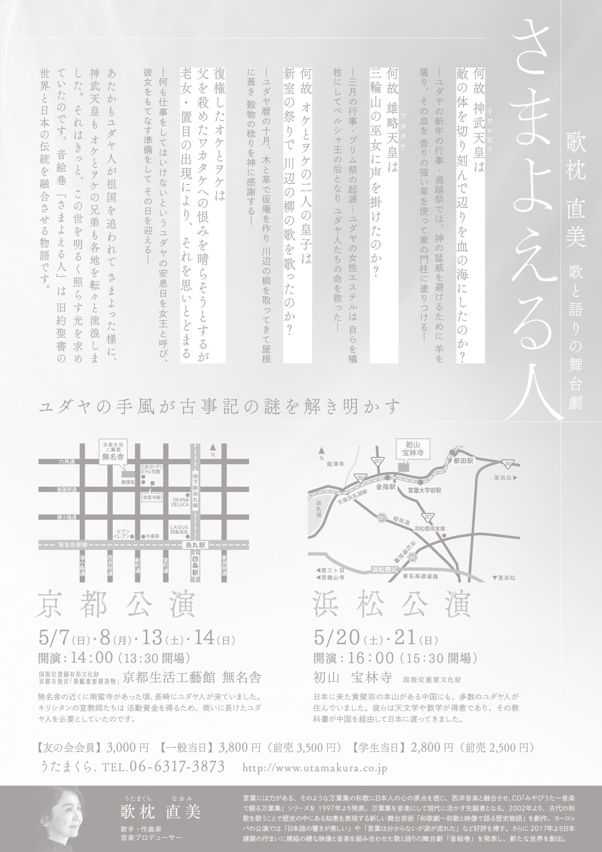 あたかもユダヤ人が祖国を追われてさまよった様に、神武天皇もオケとヲケの兄弟も各地を転々と流浪しました。それはきっと、この世を明るく照らす光を求めていたのです。音絵巻「さまよえる人」は旧約聖書の世界と日本の伝統を融合させる物語です。